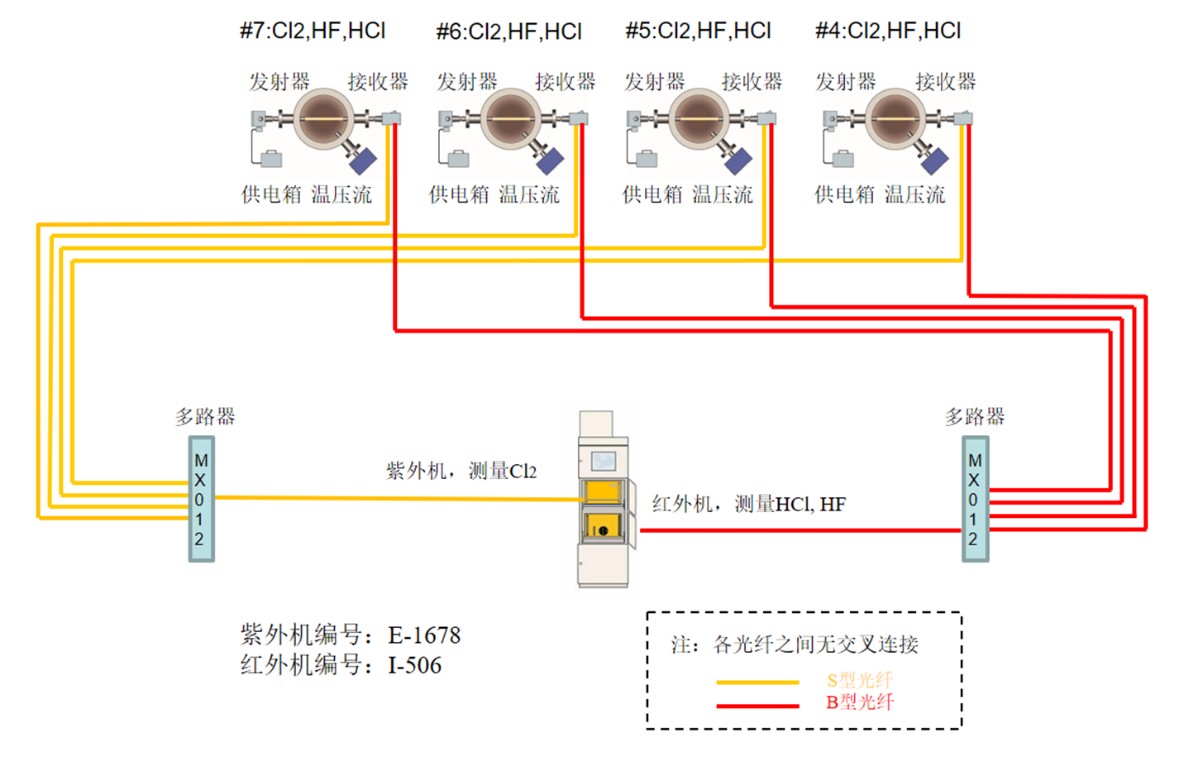 應用場景:采用了OPSIS SYSTEM 400拖帶監測的方案,實現套系統拖帶監測多條煙囪廢氣的功能