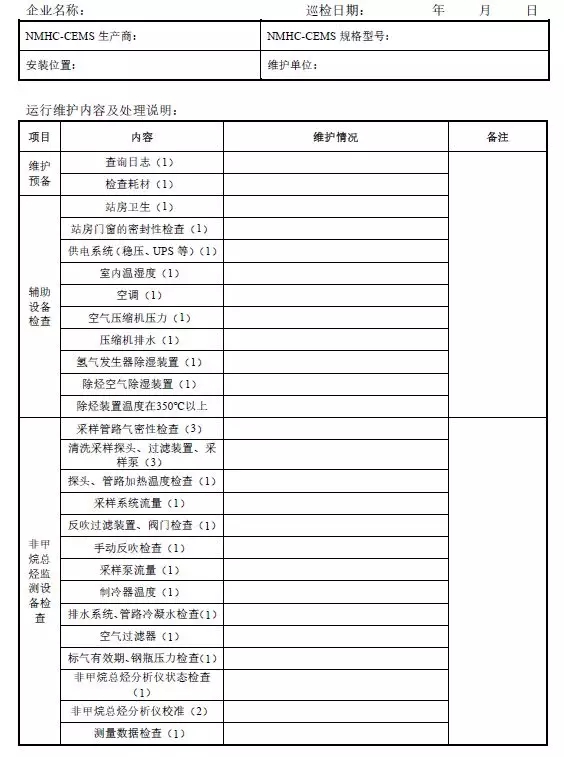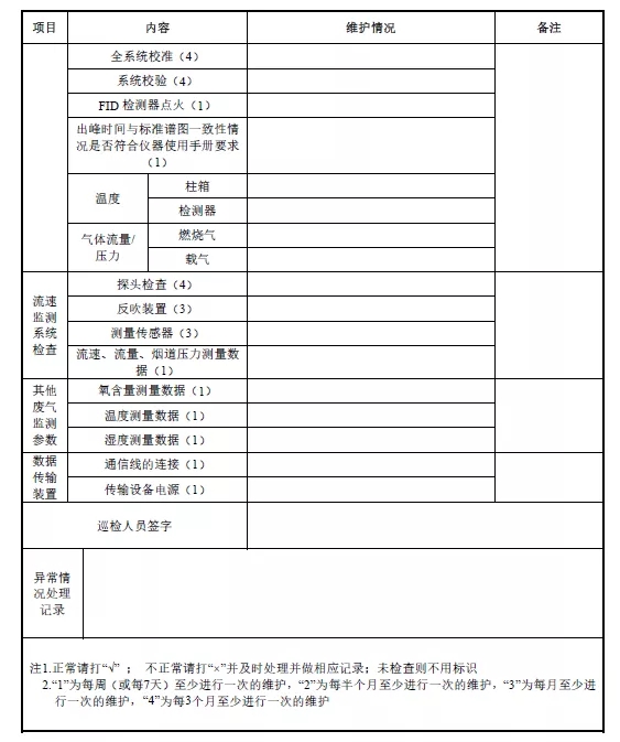 VOCs在線監測系統日常巡檢記錄應包括檢查項目、檢查日期、被檢項目的運行狀態等內容,而且每次巡檢應記錄并歸檔,日常巡檢時間間隔不超過7d。