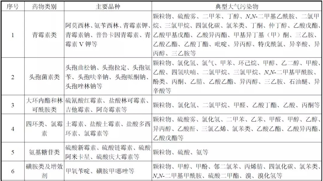 下表為制藥行業(yè)生產(chǎn)過(guò)程中排放的典型VOCs污染物: