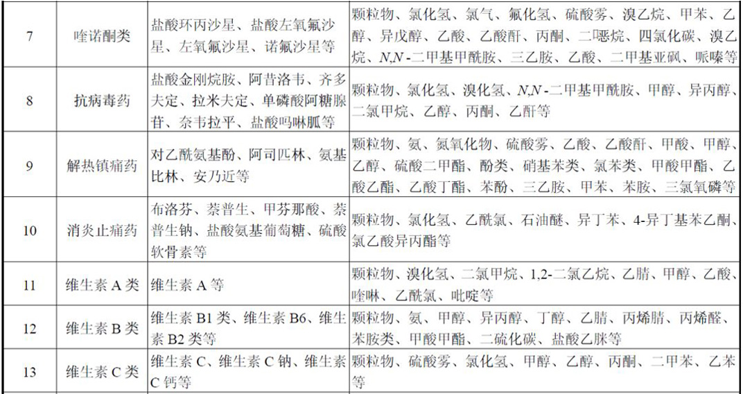 制藥行業(yè)生產(chǎn)過(guò)程中排放的典型VOCs污染物